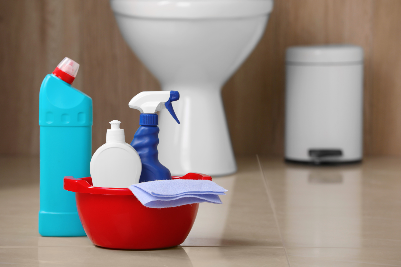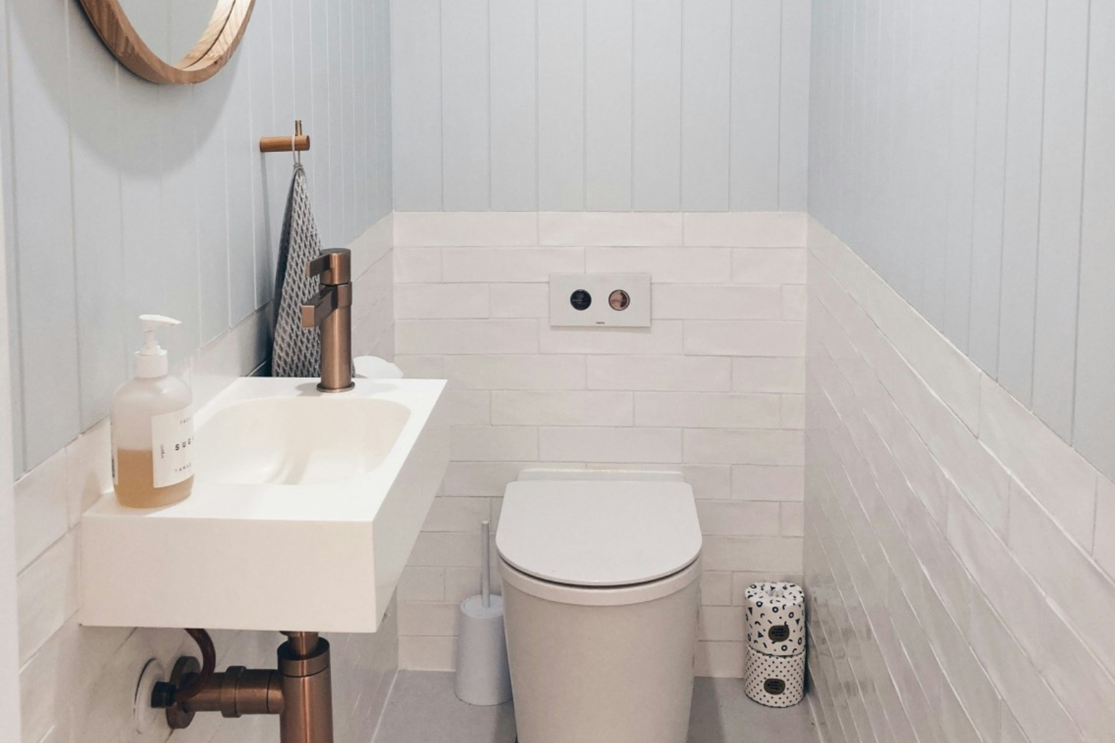 ブラシや洗剤など、生活感のある掃除用具。人目に付かないところに隠せたらこだわりトイレの空間を邪魔しません。