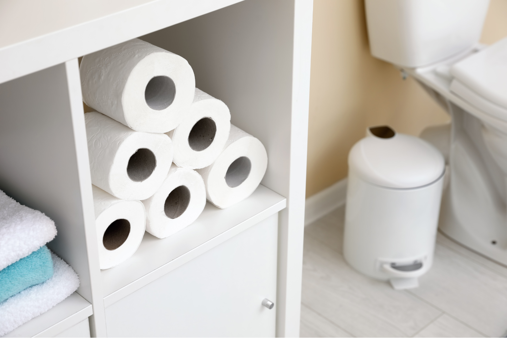 急なトイレットペーパー切れに備えて、トイレ空間にストックがあると安心です。