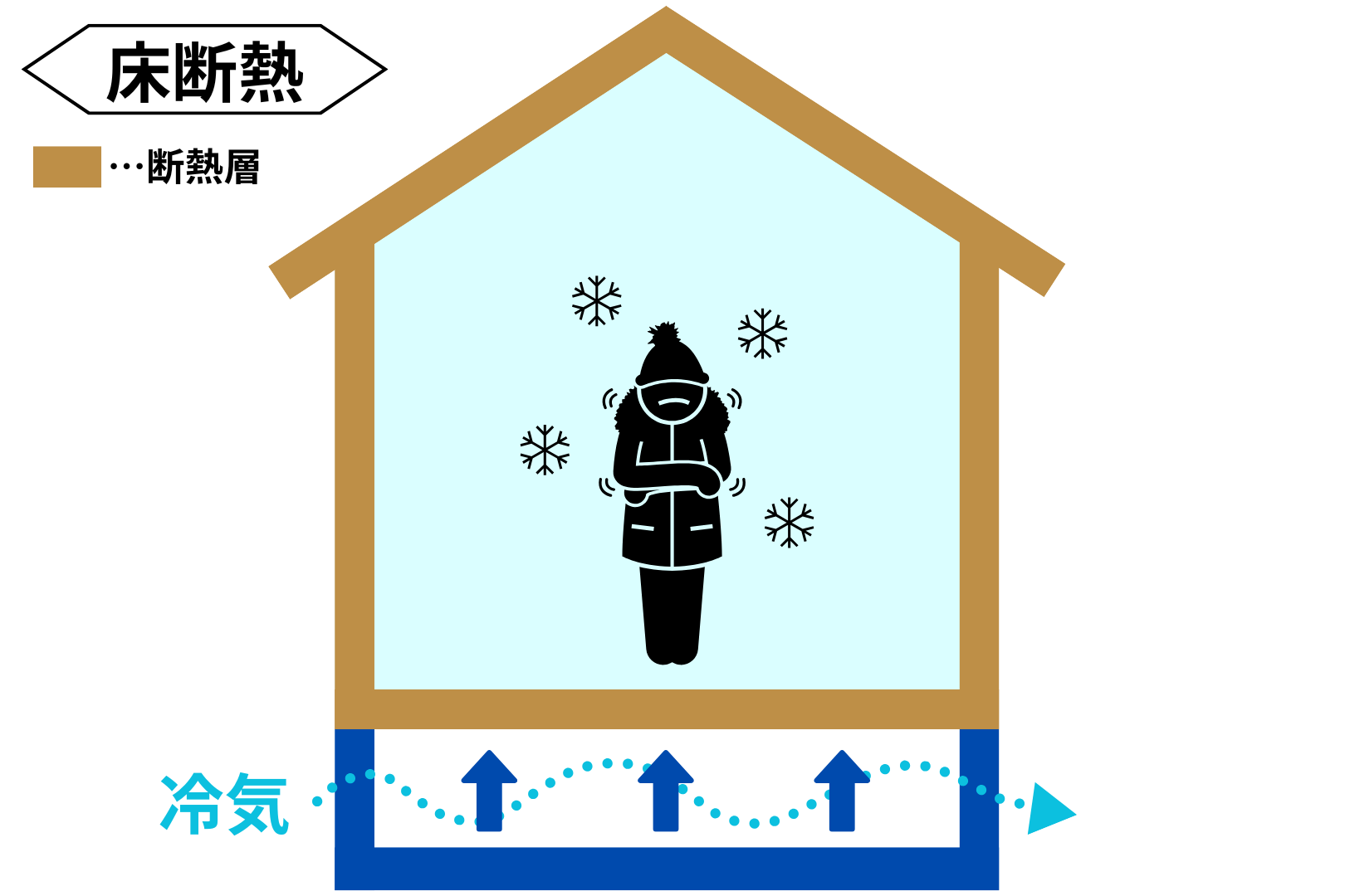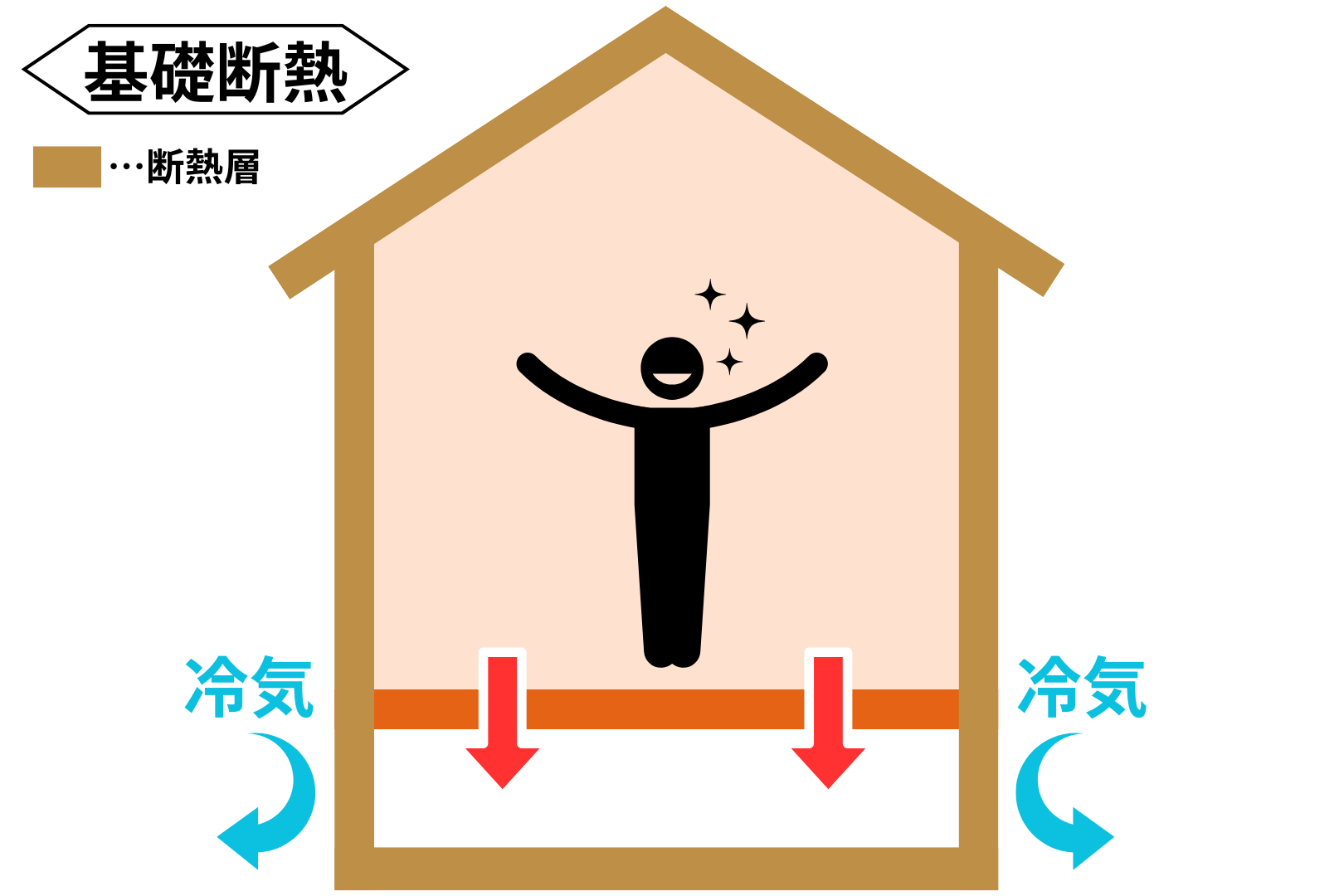 基礎断熱は床下全体を室内と同じ環境として扱うため、断熱材が外気や湿気の影響を受けにくく、施工後も隙間ができにくい構造です。
